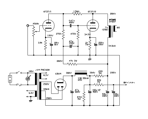 6FD7シングルアンプの回路